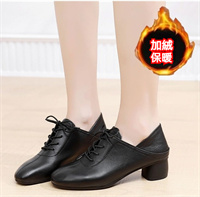 粗跟單鞋女真軟皮新款時尚百搭小皮鞋中跟深口女鞋媽媽鞋