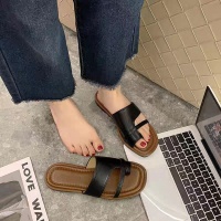 2025新款 方頭時尚百搭仙女風 簡約一字拖鞋平底羅馬沙灘拖鞋女