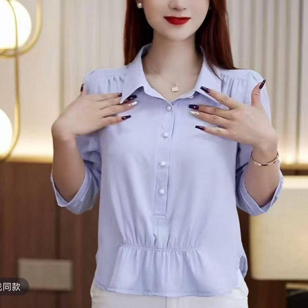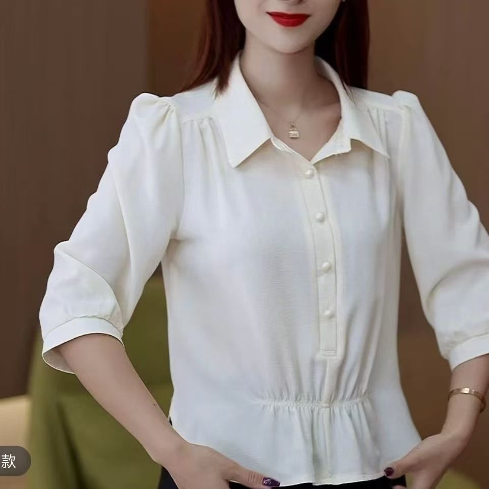 時尚翻領襯衫 中袖顯瘦面料舒適 收腰藏肉 氣質爆棚 泡泡袖減齡 職場或平時穿搭必備款
